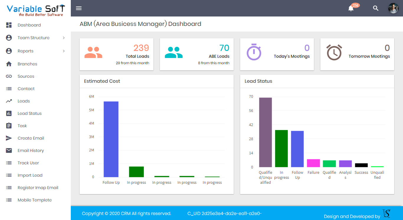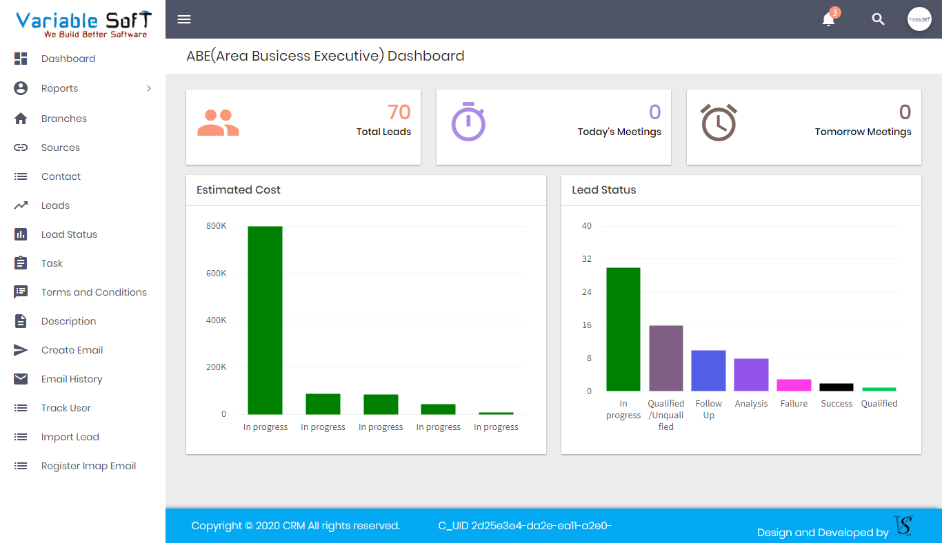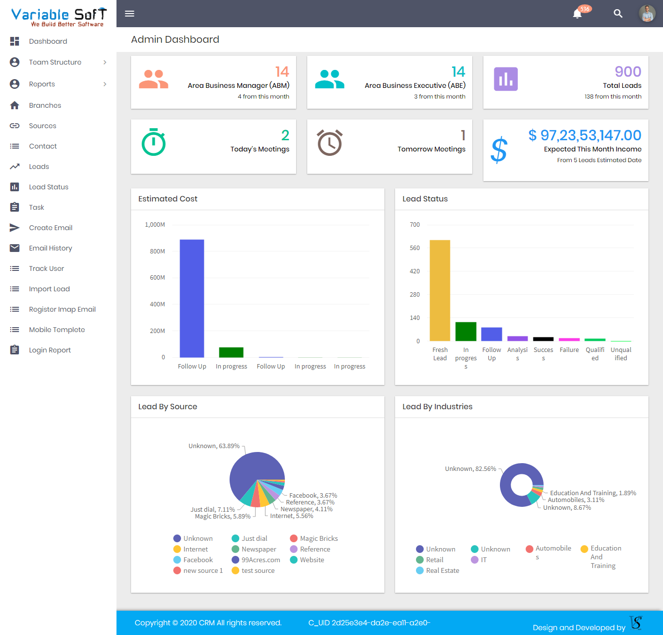 VS CRM admin manages the entire CRM system. Admin has full access to the CRM and they are the authorized person who can add/delete/edit things on CRM. Admin can hire ABM (Managers) and ABE (executive) for managing the work and admin will provide some rights to managers and executives.